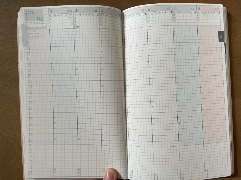 時刻が書かれているので一日の予定を書いてもいいし、記録として一日の流れを残すこともできます。